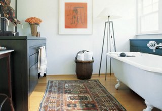 Gabbeh Runner in Bathroom, Blue Gabbeh in Bathroom